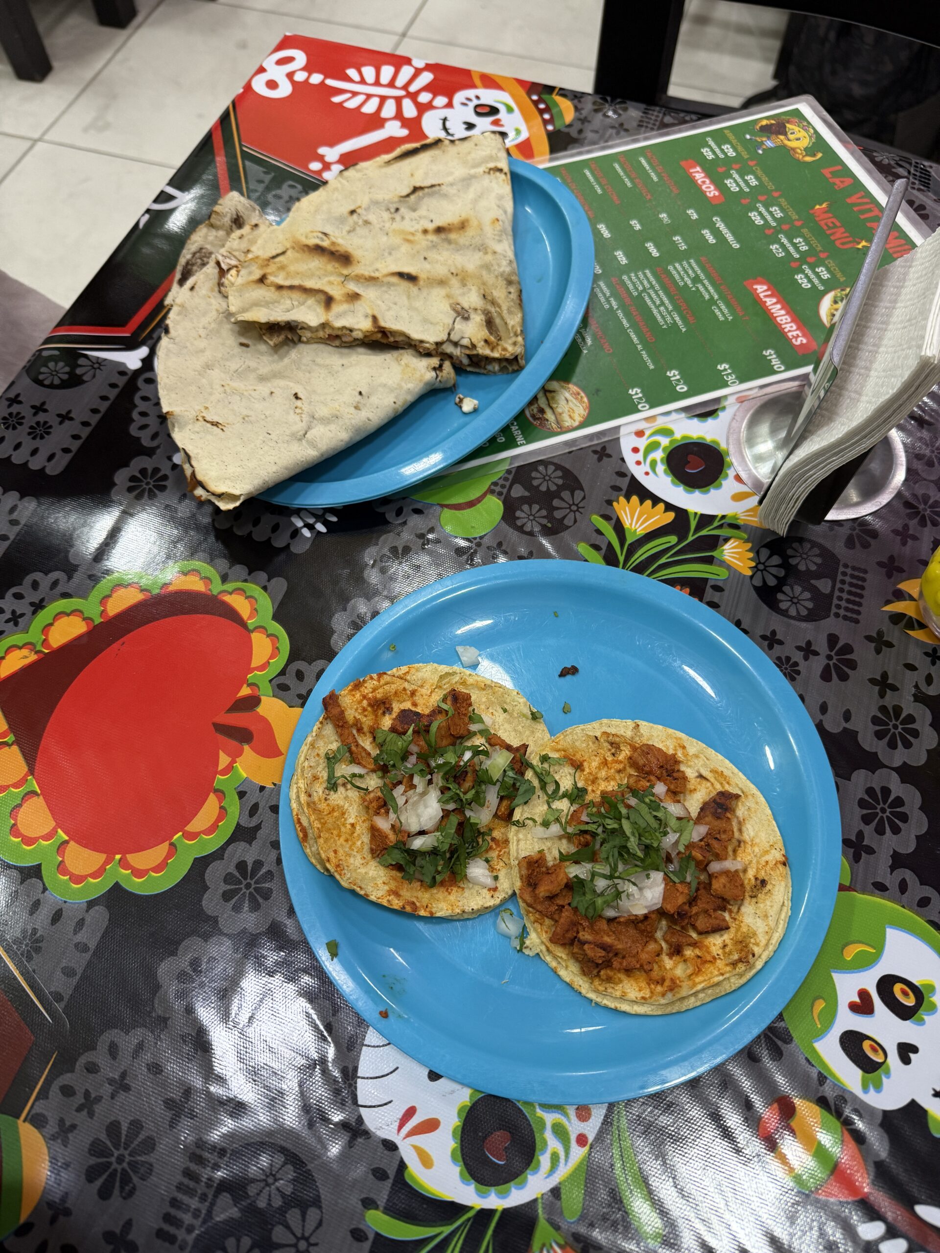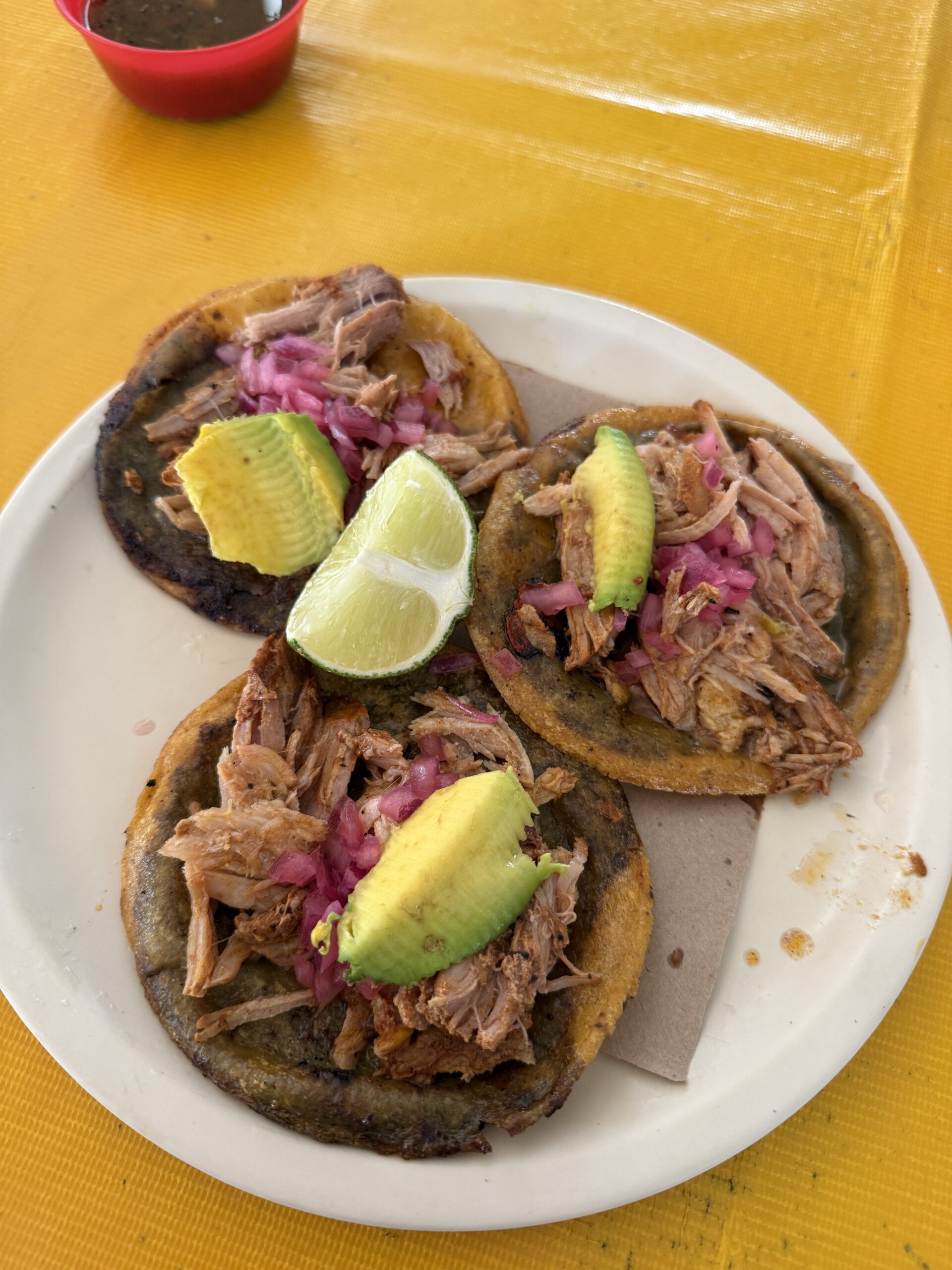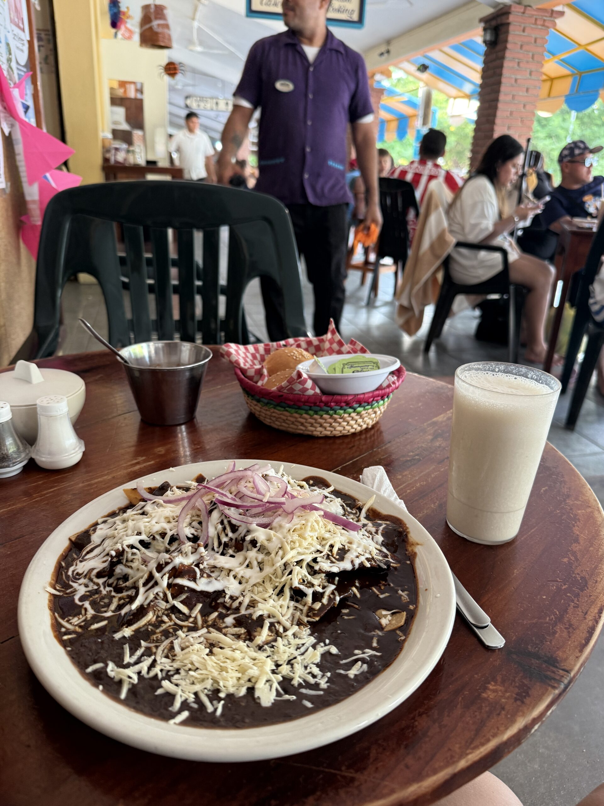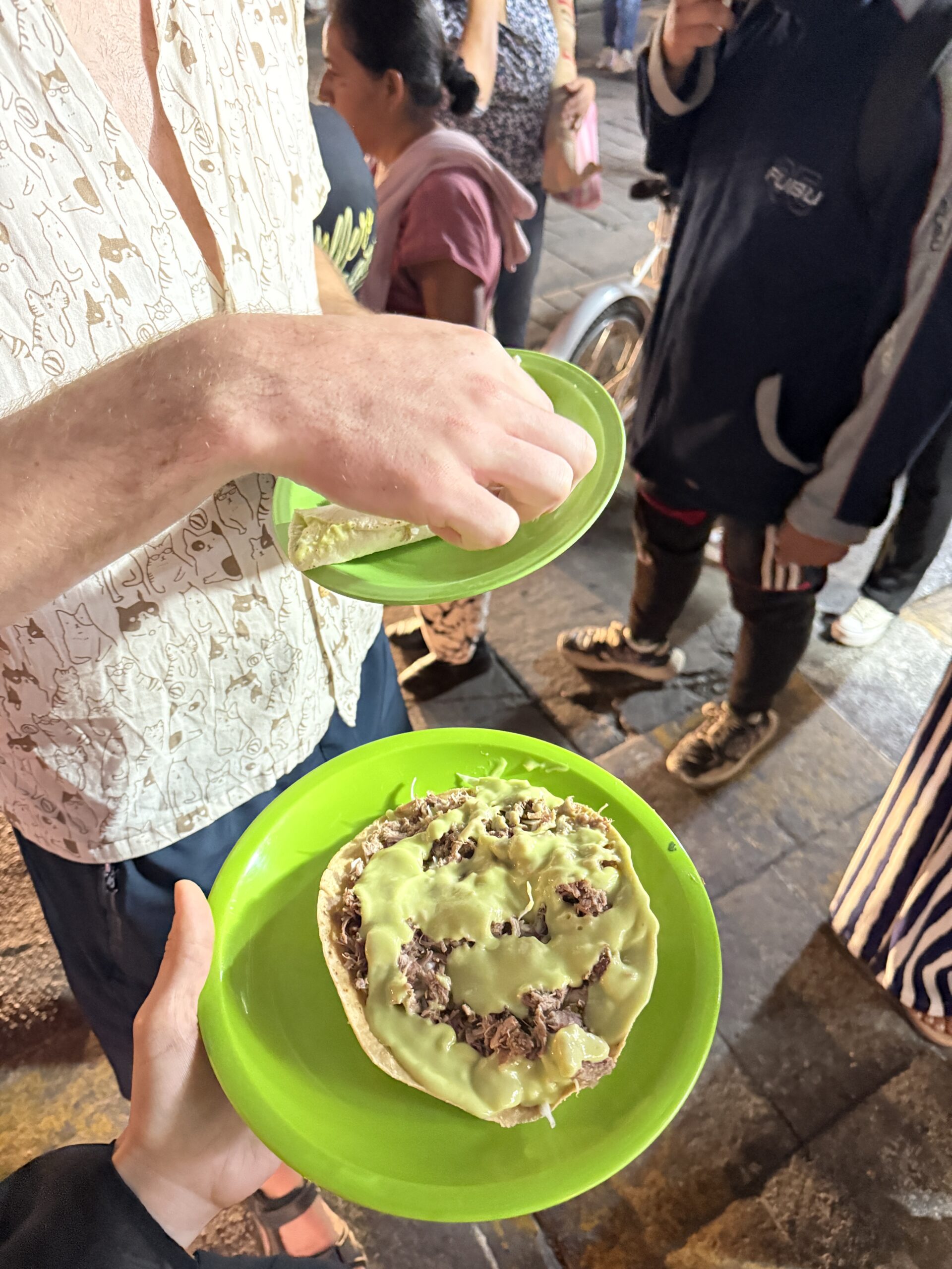 Dla mnie Gwatemala była najcięższym miejscem pod kątem jedzenia, więc dużo gotowałam w mieszkaniu – głównie bazowałam na jajkach, tortilli, bananach, awokado i płatkach owsianych, opcje w supermarketach tez były ograniczone zwłaszcza jak chodziło o mięso i nabiał. Na Flores królowała meksykańska kuchnia, w Antigua jedliśmy sporo Pupusas, w San Pedro falafeli i ugotowaliśmy z rodziną goszczącą nas – Pepian de pollo tradycyjne danie z Gwatemali. Wpadło też trochę menu del Dia:p